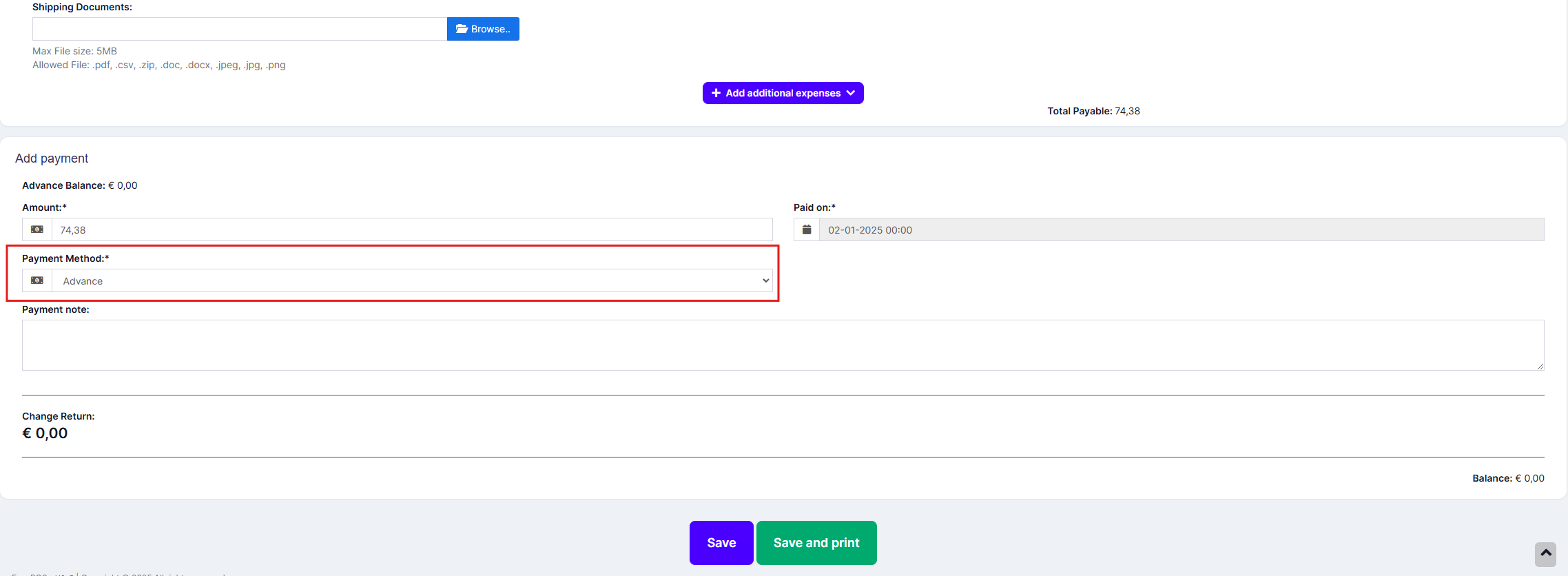 To make a purchase or sale using this advanced balance, add a sale or purchase. Select the customer/supplier that you have added advanced balance. While making the payment select the advance option and save it.