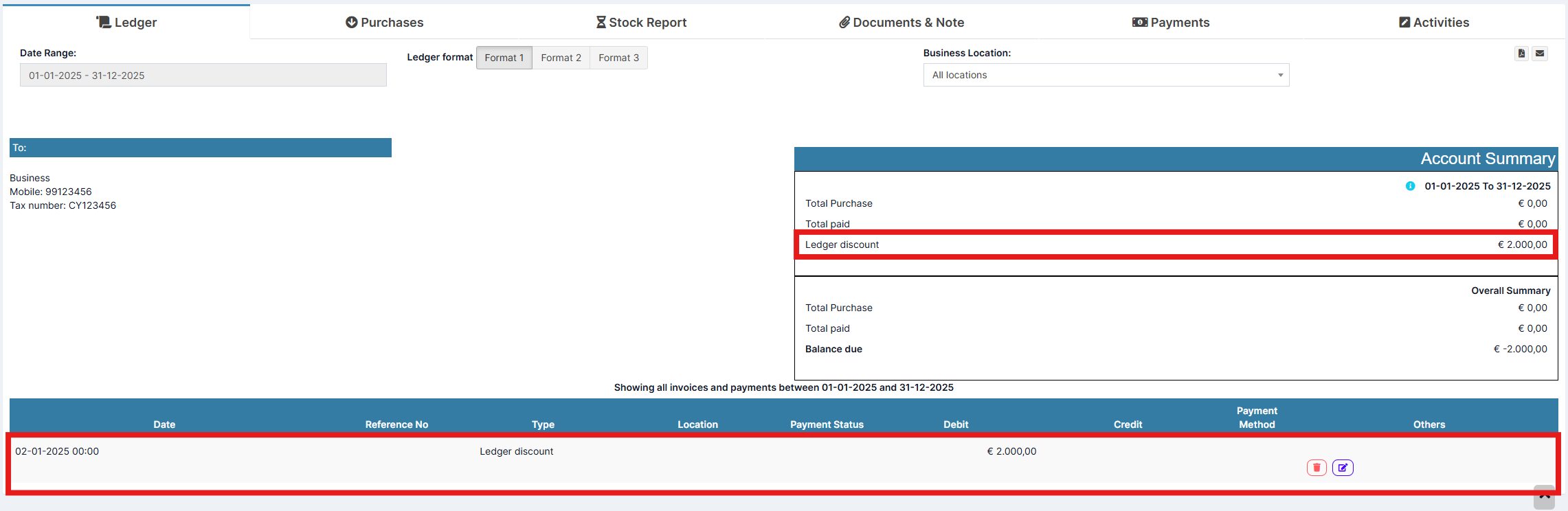 NOTE 2: Also, the Ledger Discount is different from the Sale Discount.