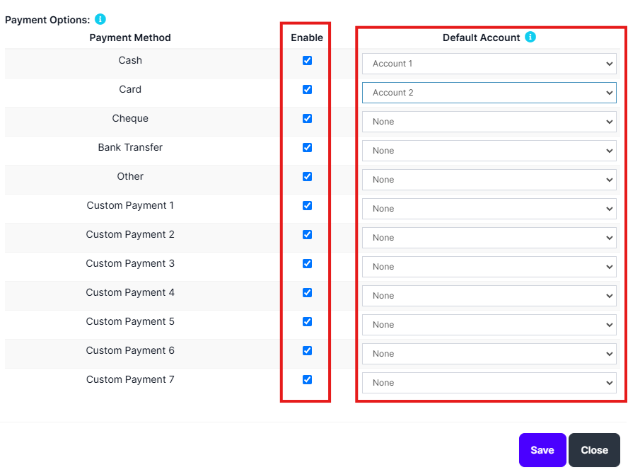 Enable : Select the payment method which will be enable for this business location